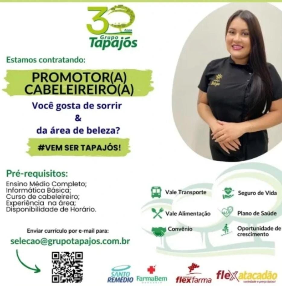 Grupo Tapajós seleciona Promotor (a), Cabeleireiro (a); Envie seu currículo!