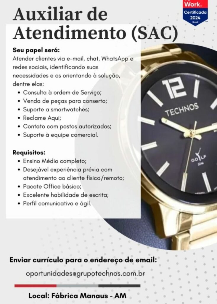 Grupo Technos abre seleção para novas oportunidades de emprego em Manaus