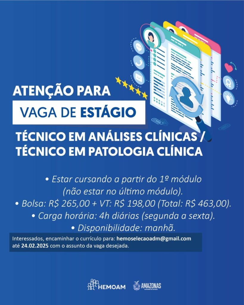 • Hospital Santa Júlia abre vaga para maqueiro em Manaus