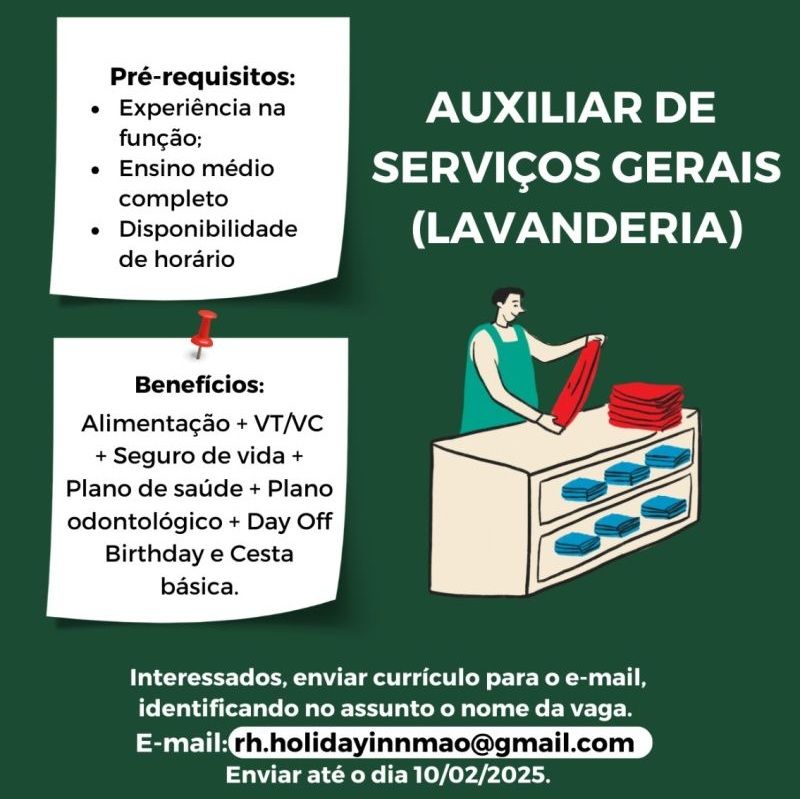 Holiday Inn Hotel seleciona Auxiliar de serviços gerais Lavanderia; Envie seu currículo!