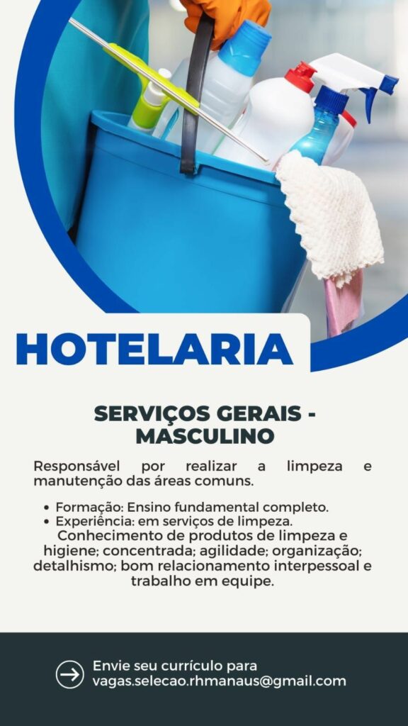 Hotel está selecionando Auxiliar de serviços gerais; Envie seu currículo!