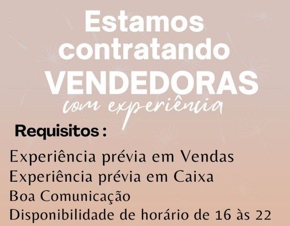 Loja está selecionando Vendedoras; Envie seu currículo!