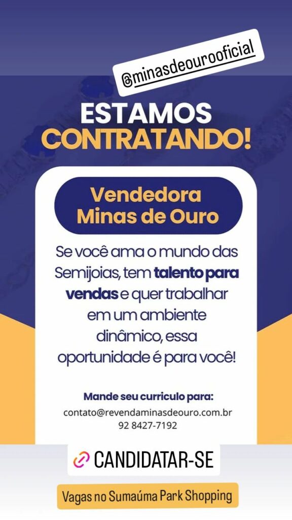 Loja no shopping samaúma seleciona Vendedora; Envie seu currículo!