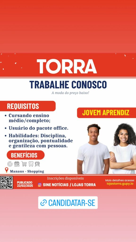 Lojas Torra está selecionando Jovem Aprendiz; Envie seu currículo!