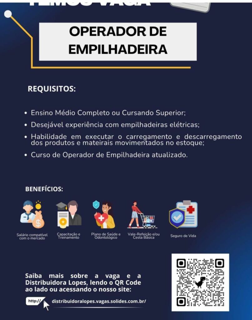 Lopes distribuidora está selecionando Operador de empilhadeira; Envie seu currículo!