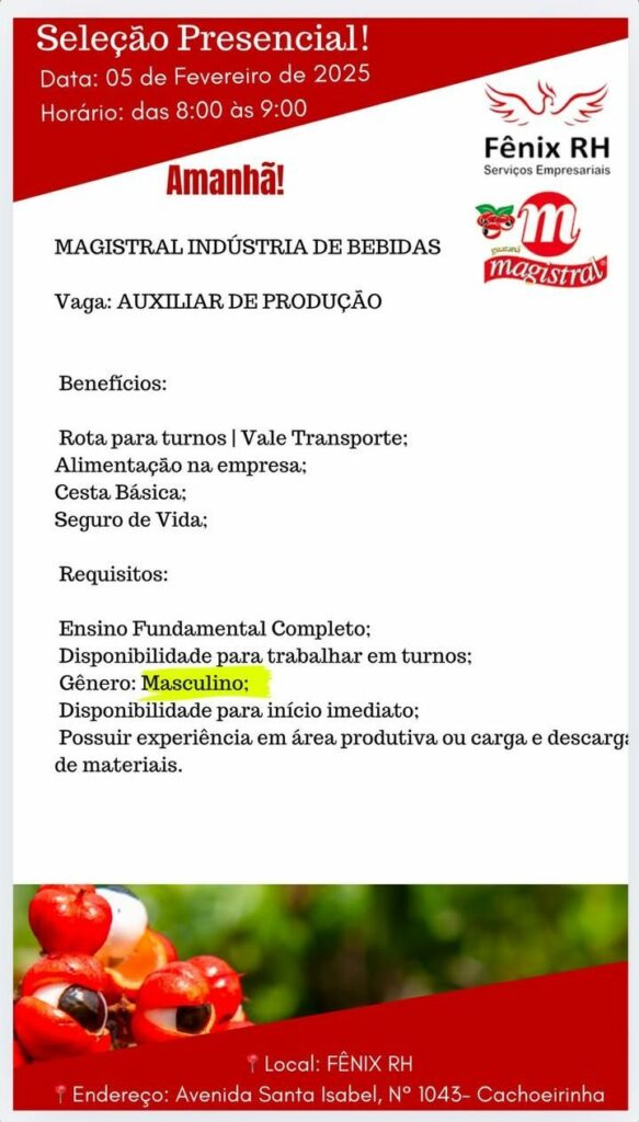 Magistral indústria de Bebidas seleciona Auxiliar de produção; Envie seu currículo!
