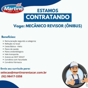 Martins rent a car seleciona Motorista D, Mecânico Revisor ônibus; Envie seu currículo!