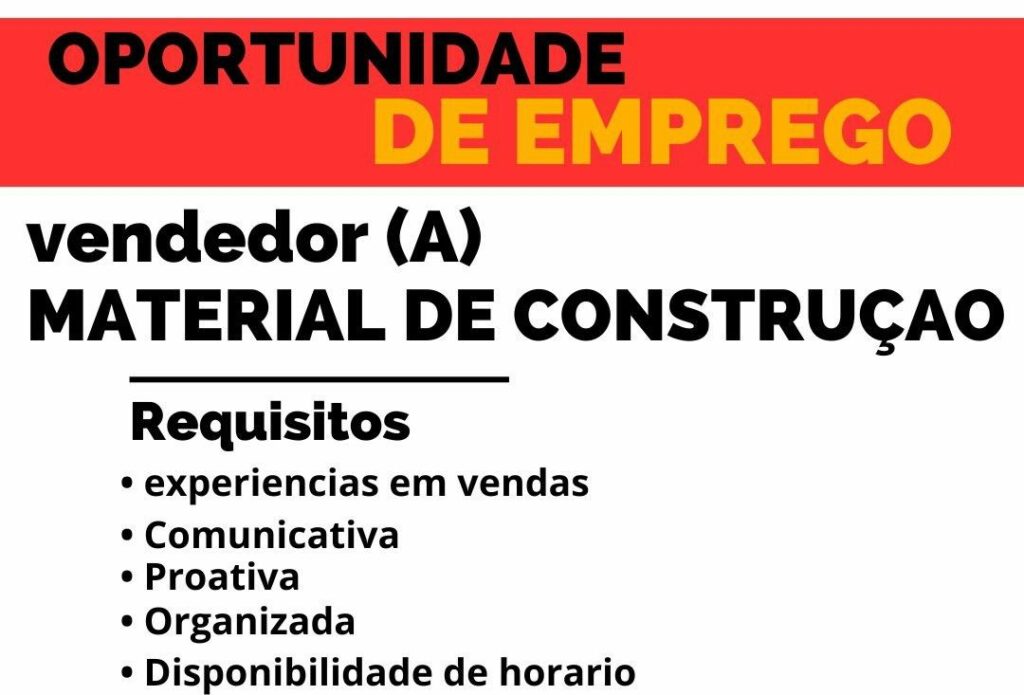 Material de construção seleciona Vendedor (a); Envie seu currículo!