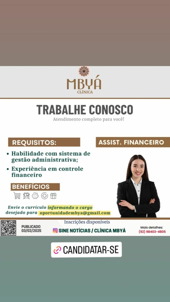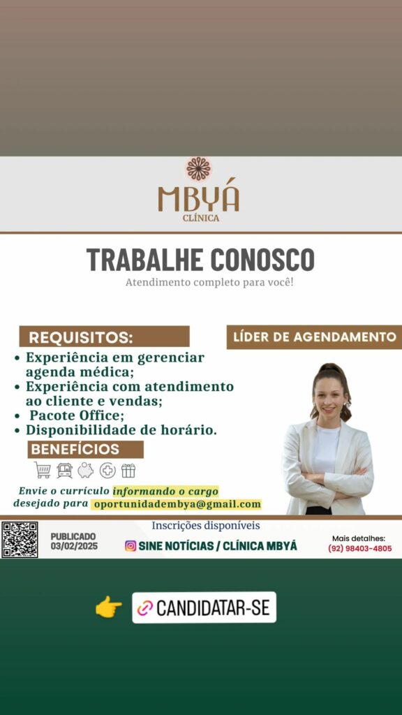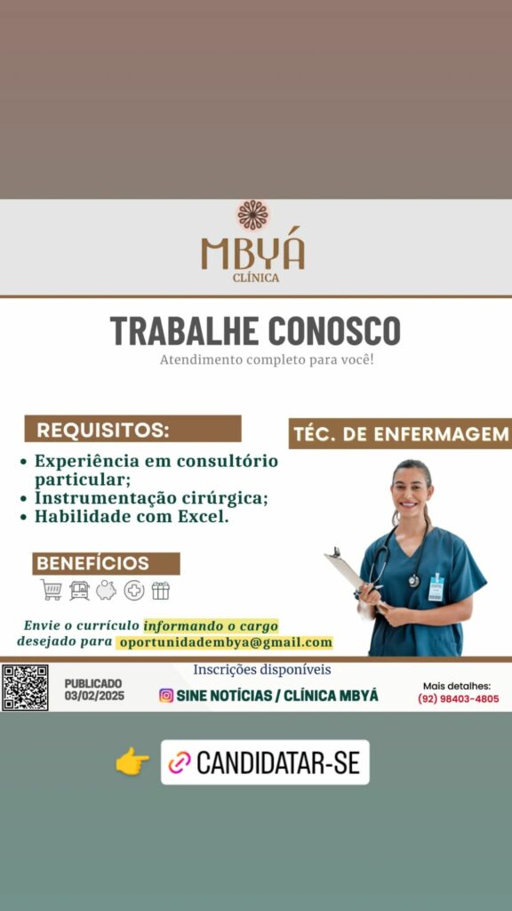 MBya clínica seleciona Líder de agendamento, Assistente financeiro, Téc de enfermagem; Envie seu currículo!