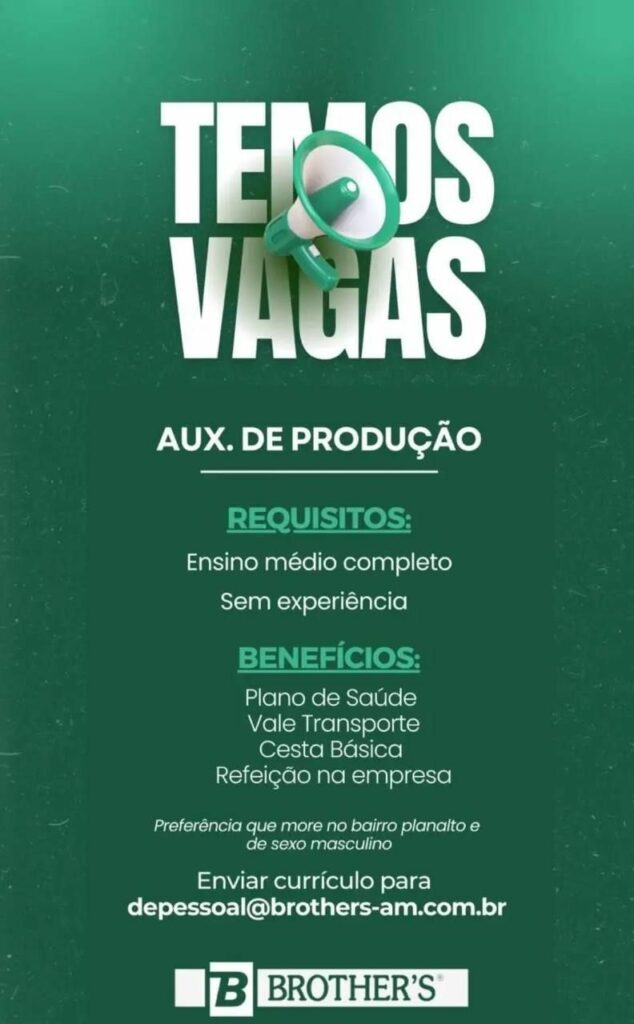 Não é necessário experiência! Empresa Brother’s está selecionando Auxiliar de produção; Envie seu currículo!