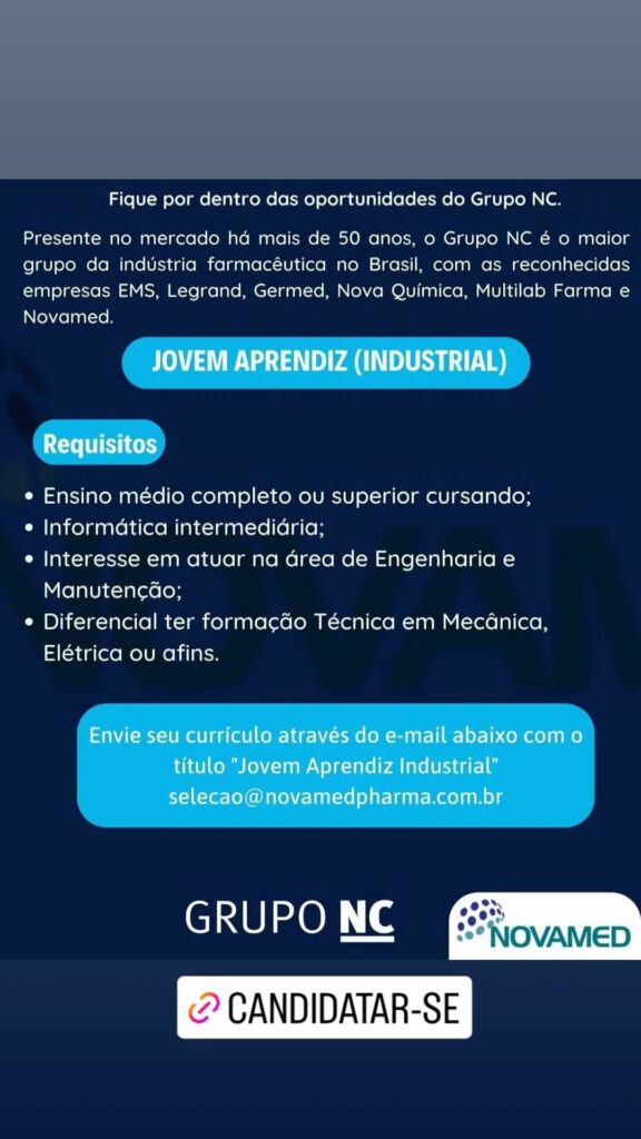 Novamed está selecionando Jovem Aprendiz; Envie seu currículo!