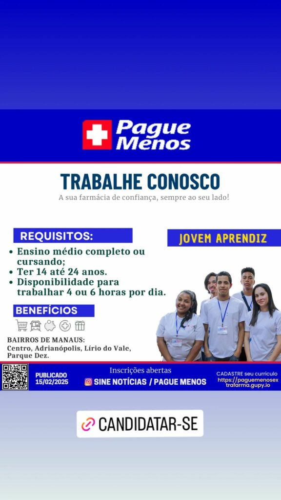 Pague menos drogaria seleciona Jovem Aprendiz; Envie seu currículo!