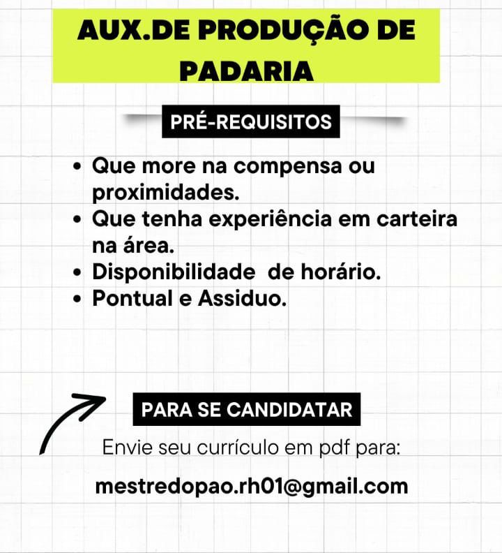 Panificadora seleciona Auxiliar de produção; Envie seu currículo!