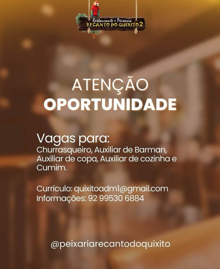 Peixaria está selecionando Churrasqueiro, Auxiliar de Barman, Auxiliar de copa, Auxiliar de cozinha, Cumim; Envie seu currículo!
