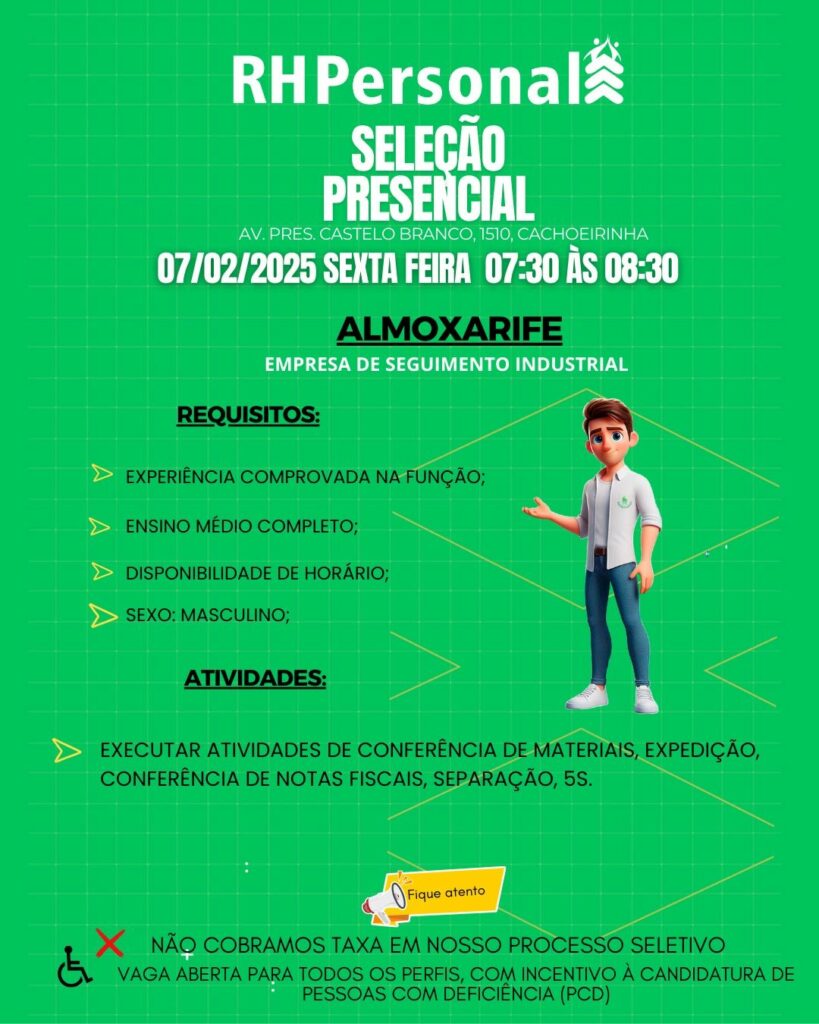 Rh está selecionando Almoxarife; Envie seu currículo!