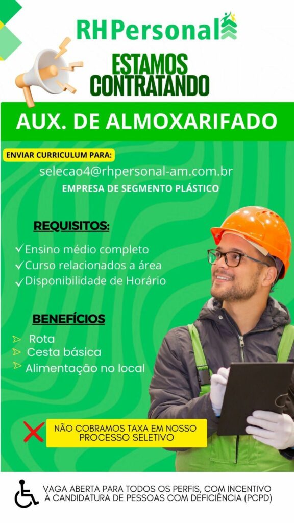 Rh está selecionando Auxiliar de almoxarifado; Envie seu currículo!