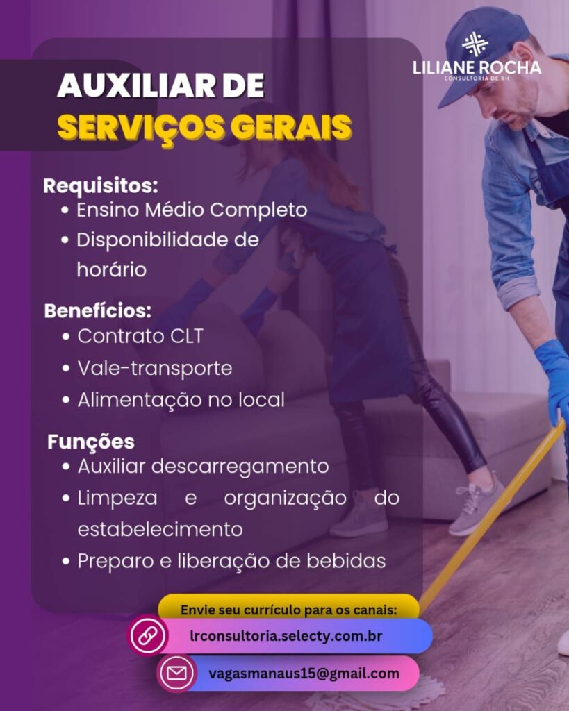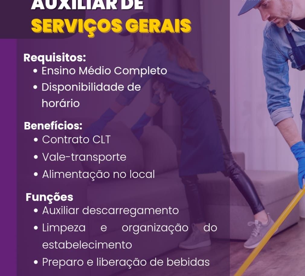 Rh está selecionando Auxiliar de serviços gerais; Envie seu currículo!
