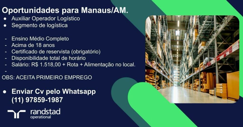 Rh está selecionando Auxiliar operador logístico; Envie seu currículo!