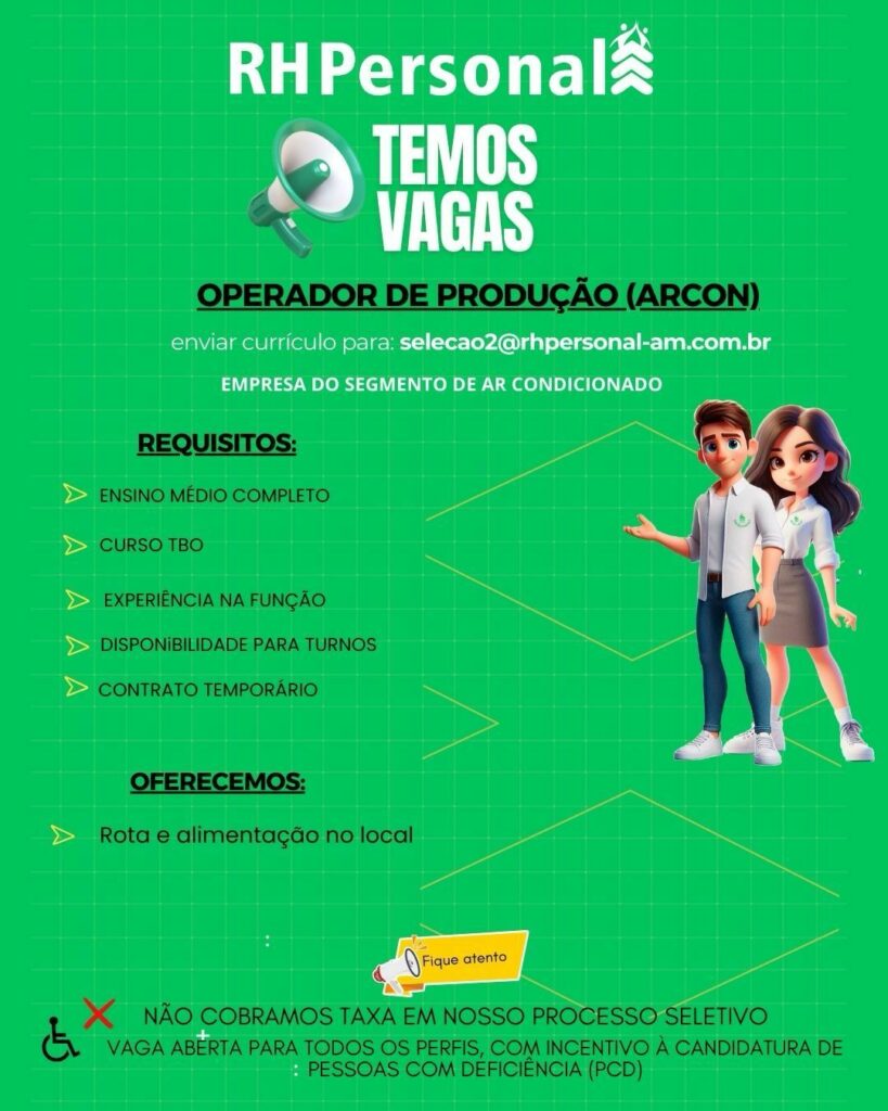 Rh está selecionando Operador de produção; Envie seu currículo!