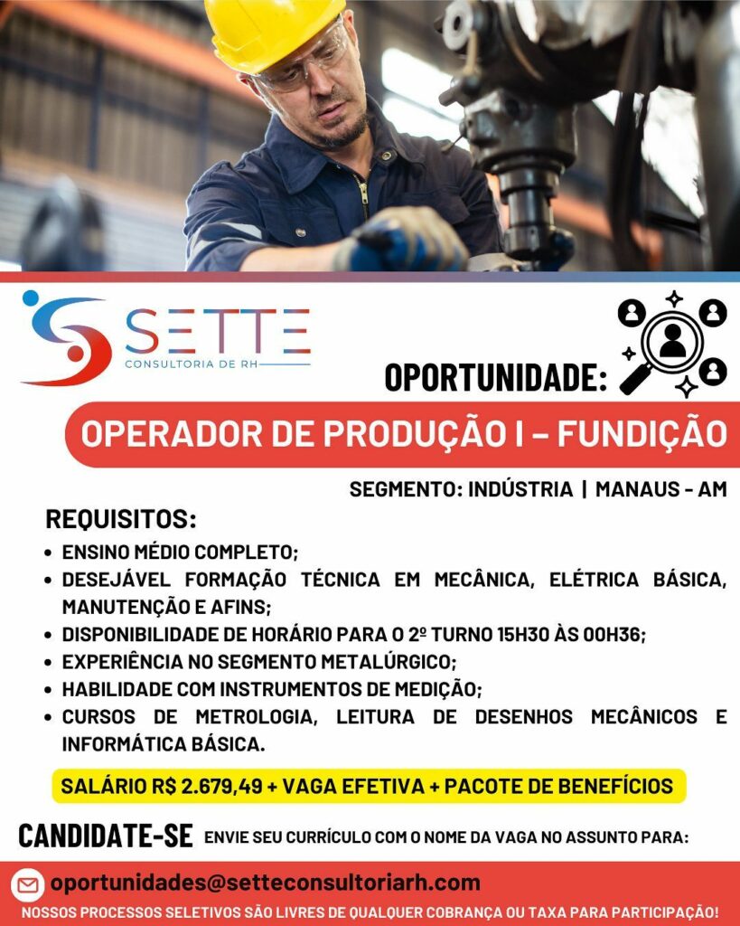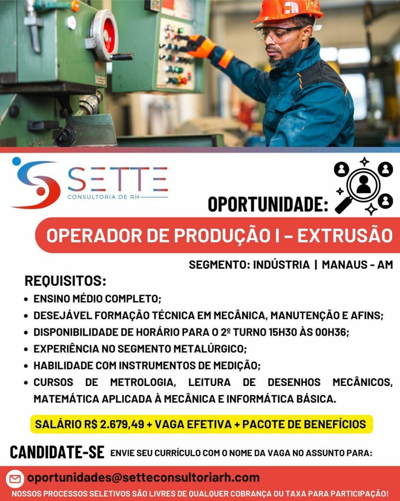 • Operador de produção I para Trabalhar na Fábrica Da Elgin