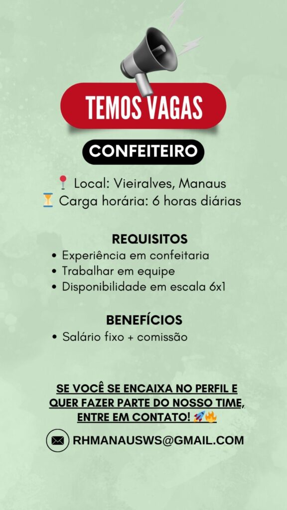 Seleção para Atendente de quiosque, Confeiteiro; Envie seu currículo!