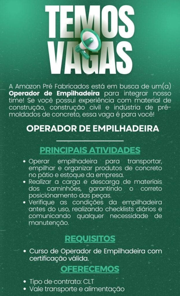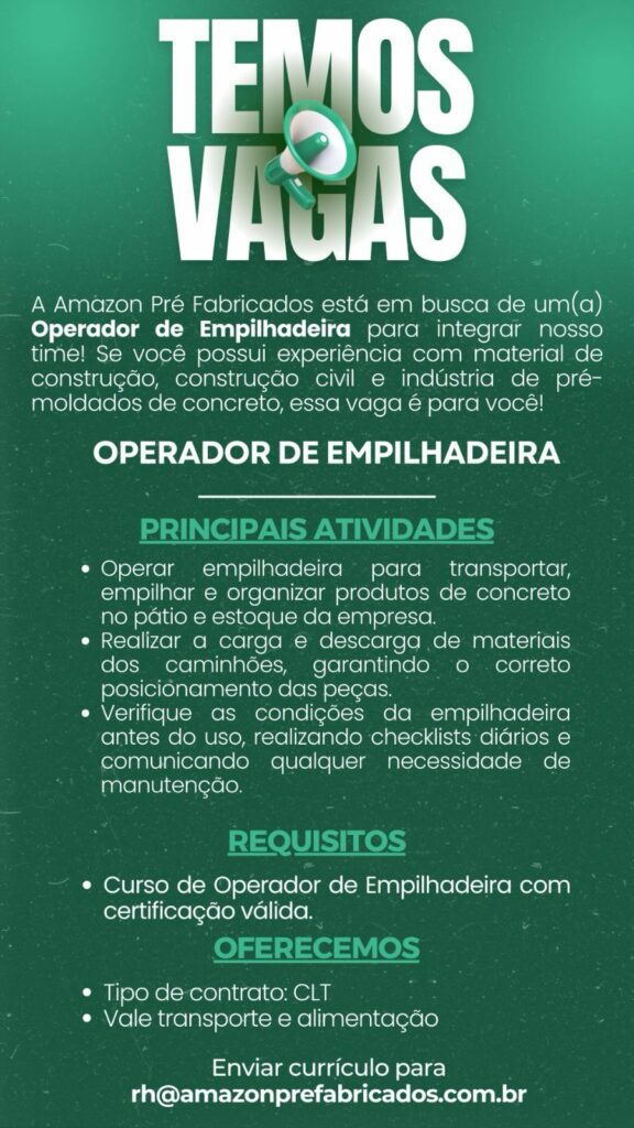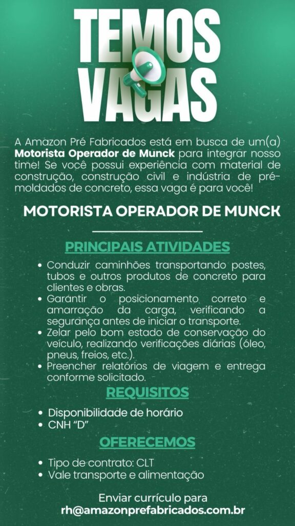 Seleção para Motorista Operador de munck, Operador de empilhadeira; Envie seu currículo!