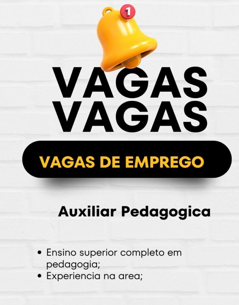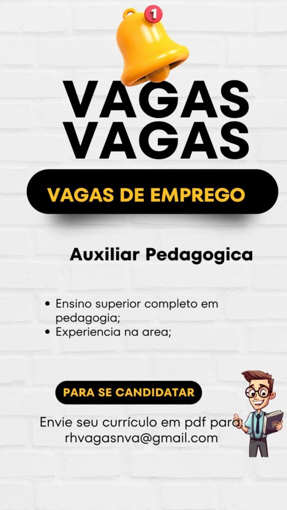 Seleção para seguinte vaga Auxiliar pedagógica; Envie seu currículo!