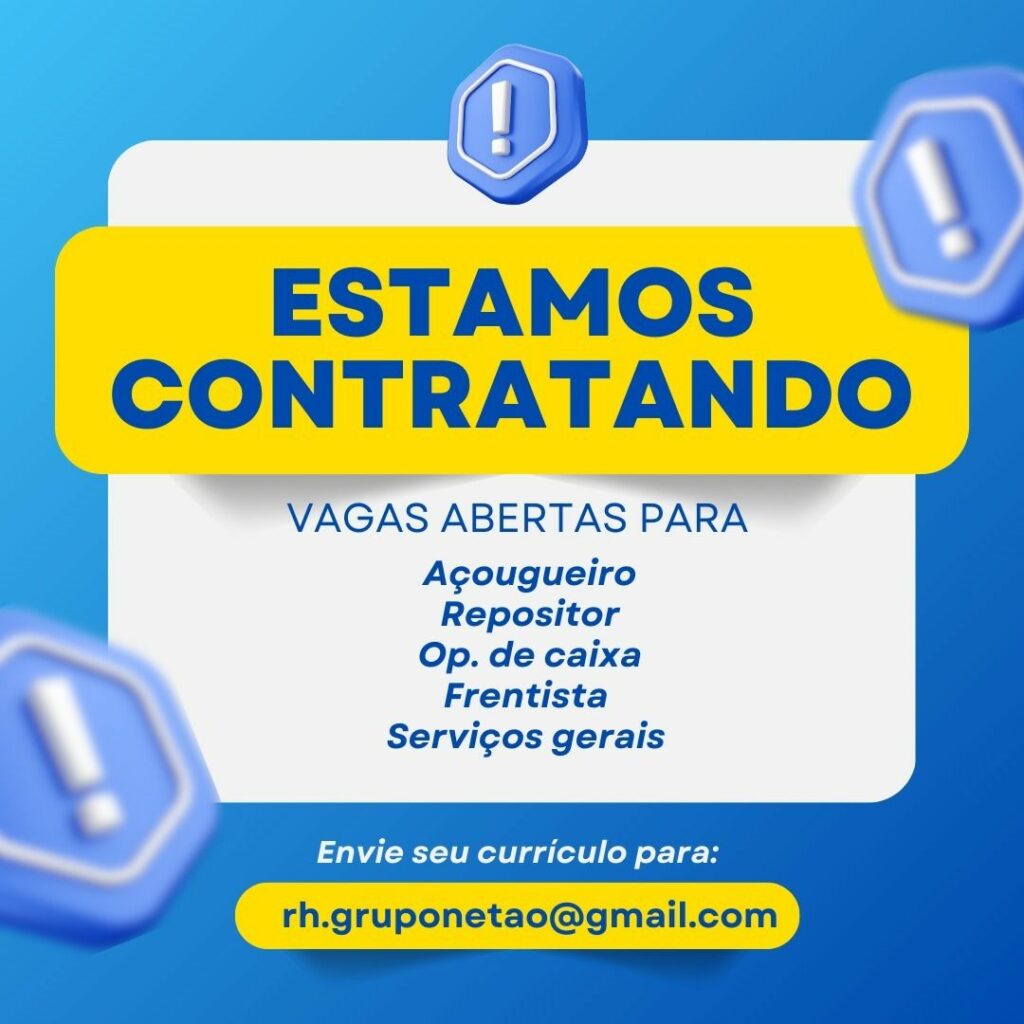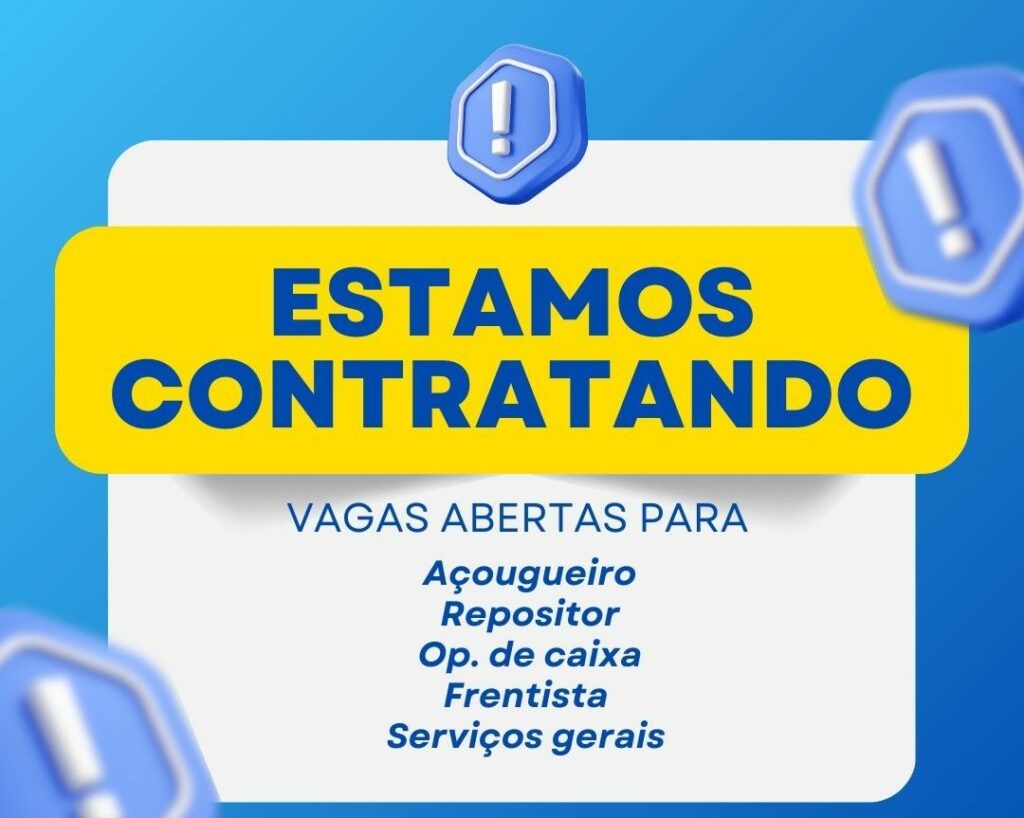 Seleção para seguintes vagas Açougueiro, Repositor, Operador de caixa, Frentista, Serviços Gerais; Envie seu currículo!