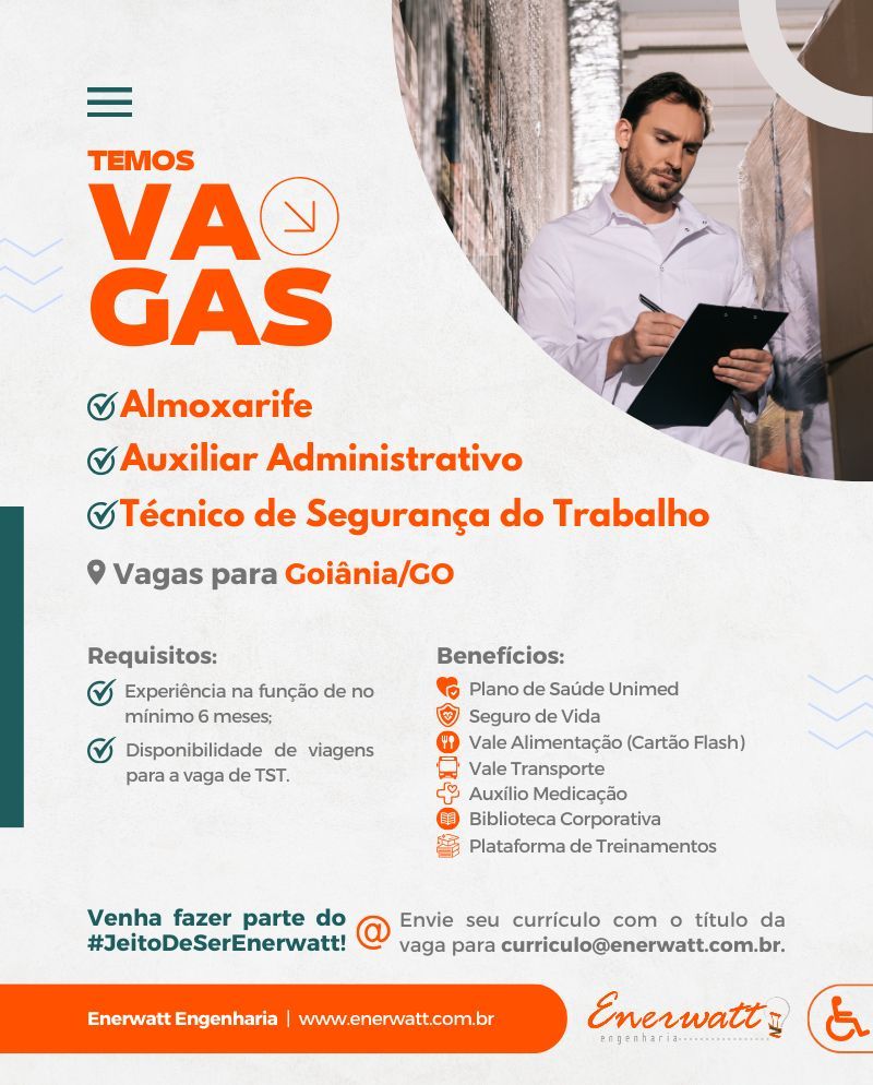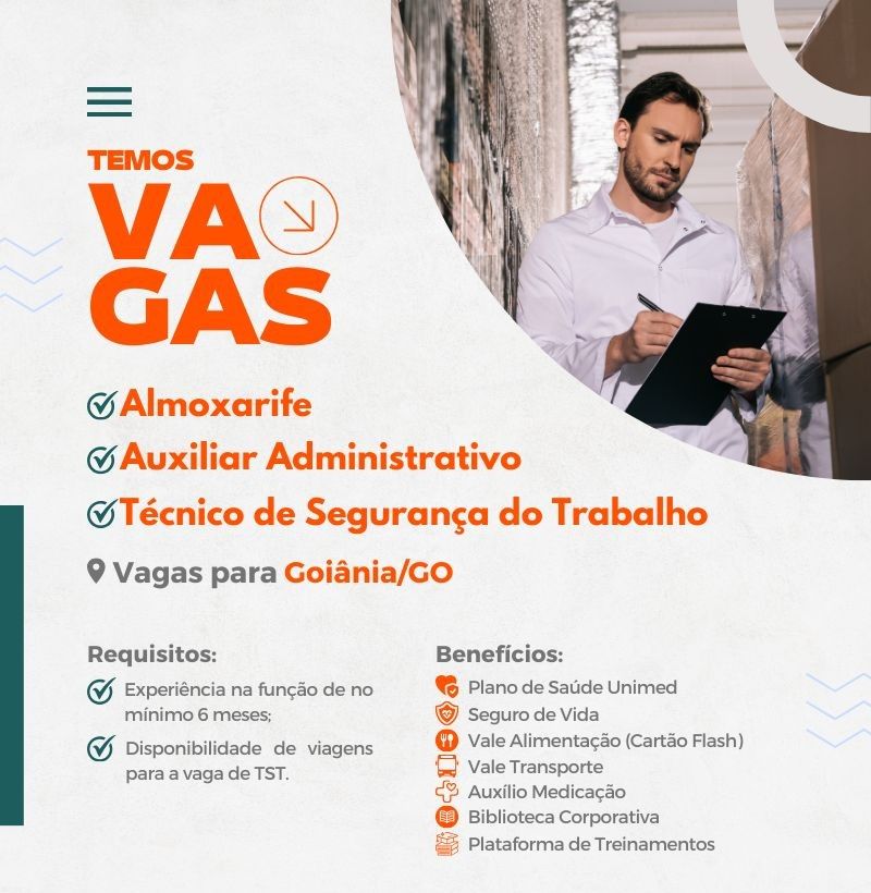 Seleção para seguintes vagas Almoxarife, Auxiliar administrativo, Técnico de segurança do trabalho; Envie seu currículo!