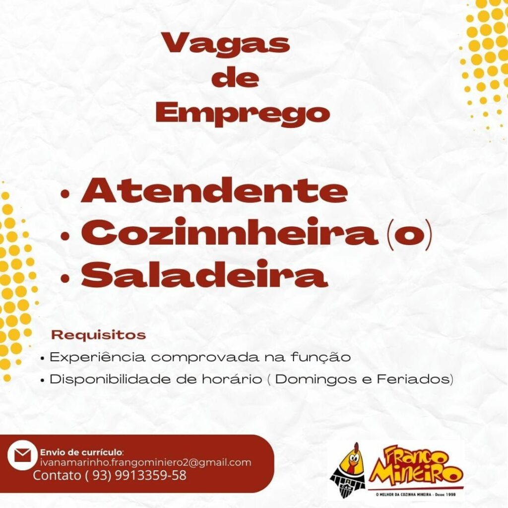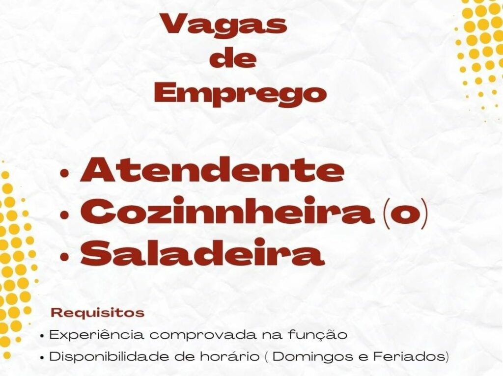 Seleção para seguintes vagas Atendente, Cozinheira (o), Saladeira; Envie seu currículo!