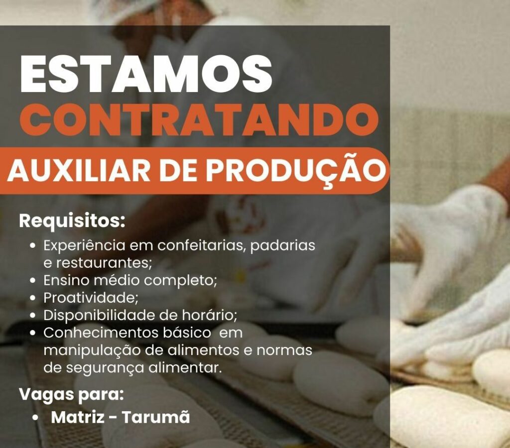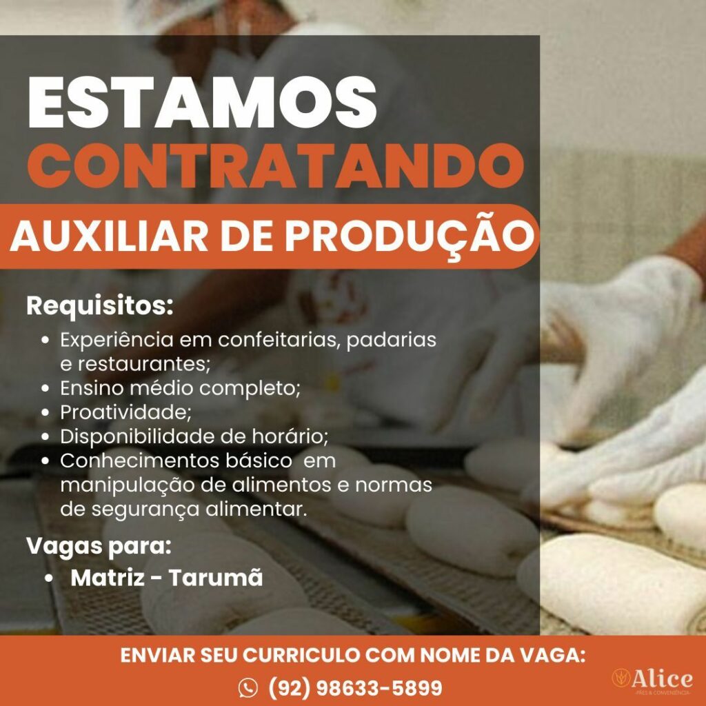 Seleção para seguintes vagas Auxiliar de produção, Operador de loja, Cozinheira, Auxiliar de cozinha, Estoquista; Envie seu currículo!