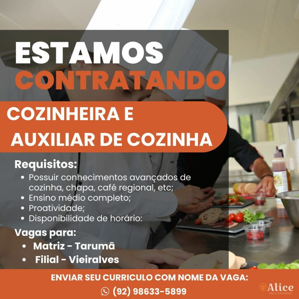 Empresa está selecionando Auxiliar de cozinha; Envie seu currículo!