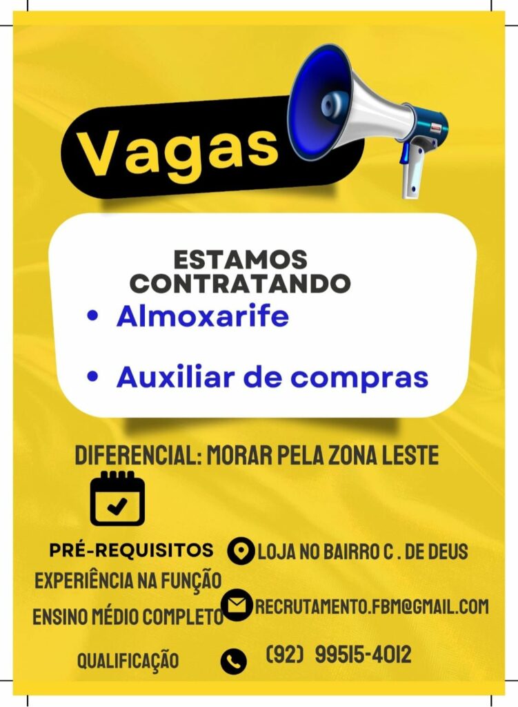 Seleção para vaga de Almoxarife, Auxiliar de compras; Envie seu currículo!