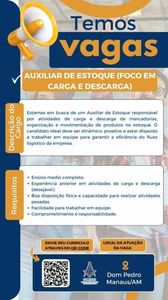 Seleção para vaga de Auxiliar de carga e descarga estoque; Envie seu currículo!