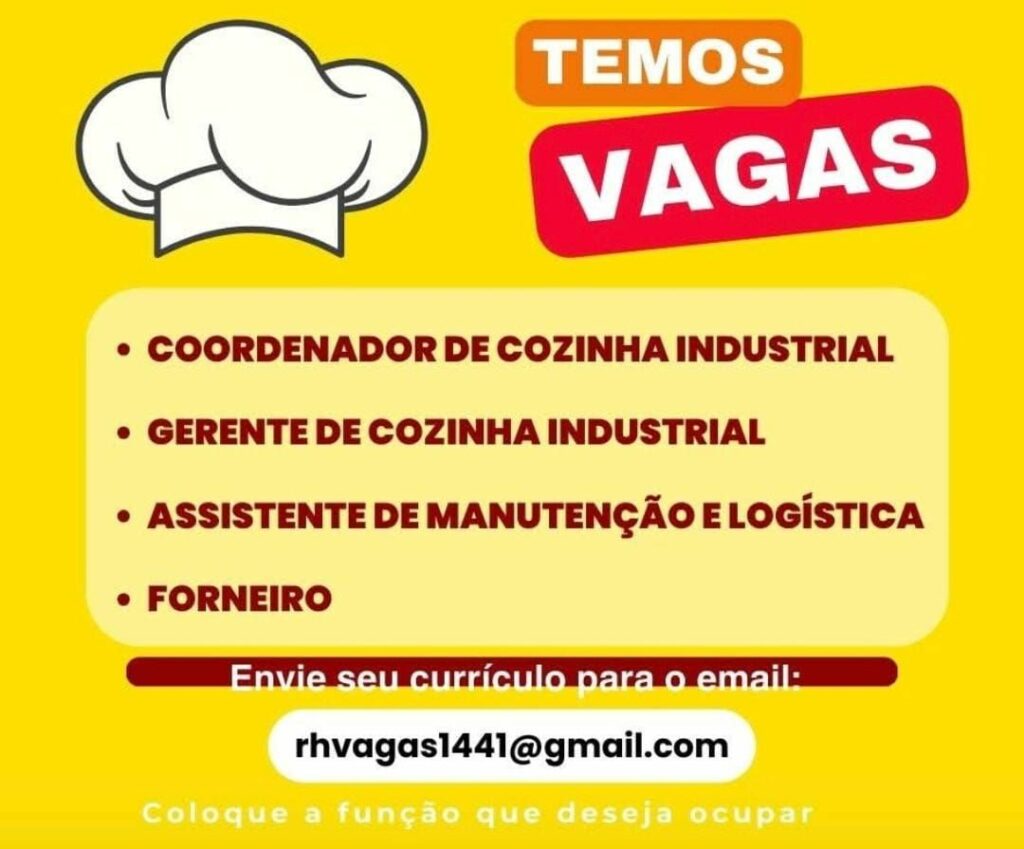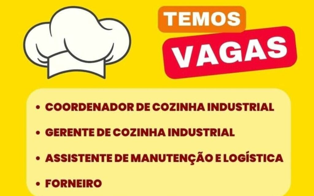 Seleção para vaga de Coordenador de cozinha industrial, Gerente de cozinha industrial, Assistente de Manuntenção e logística, Forneiro; Envie seu currículo!
