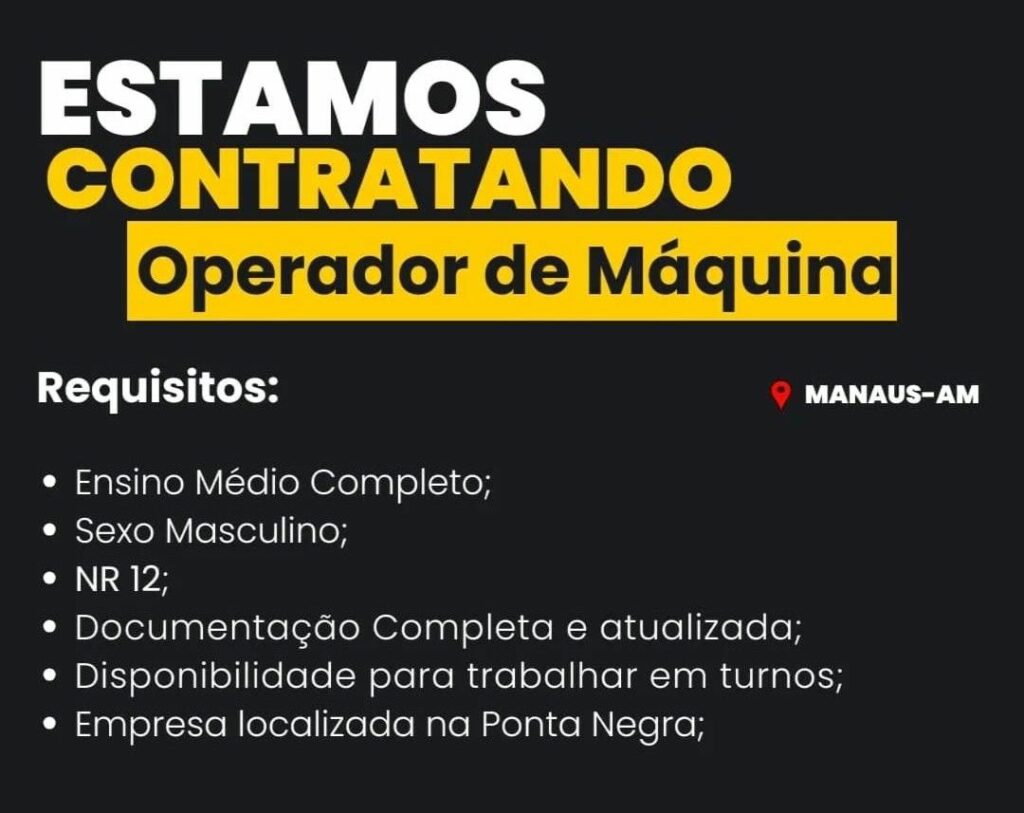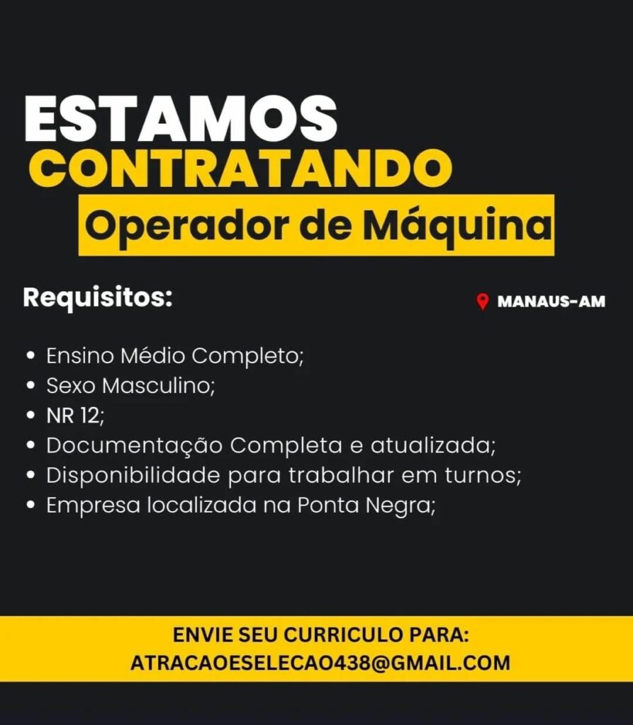 Seleção para vaga de Operador de máquina; Envie seu currículo!