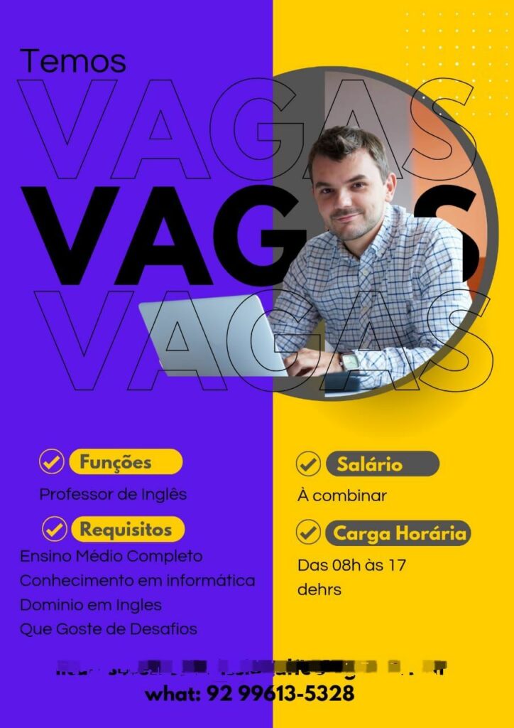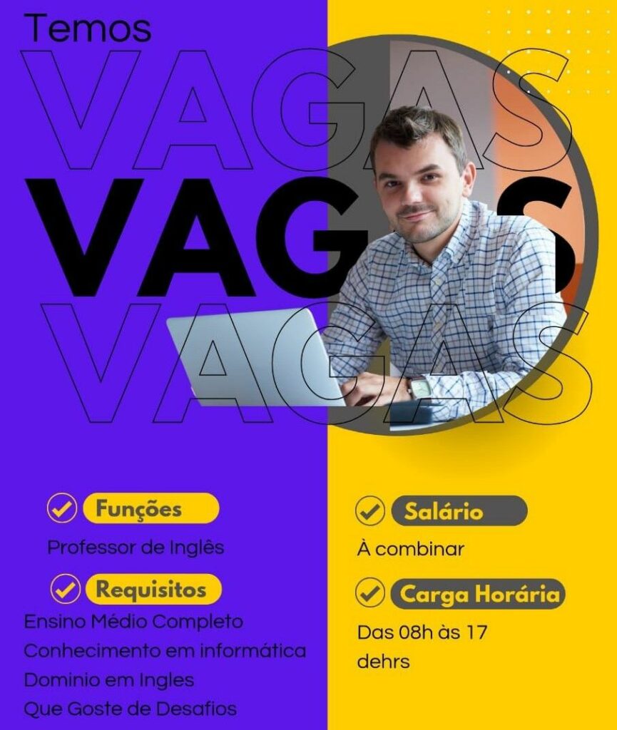 Seleção para vaga de Professor de inglês; Envie seu currículo!