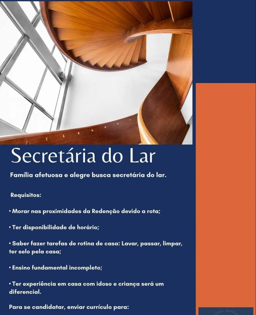 Seleção para vaga Secretária do lar; Envie seu currículo!