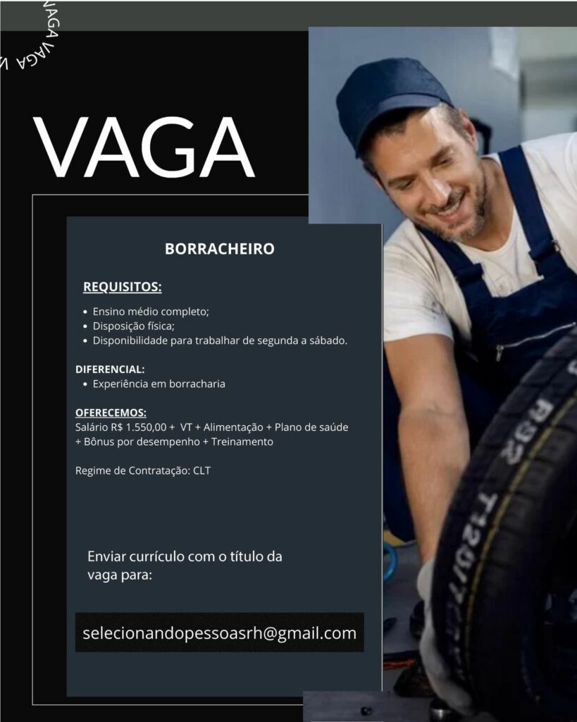 Seleção para vagas de Borracheiro, Auxiliar de social media; Envie seu currículo!
