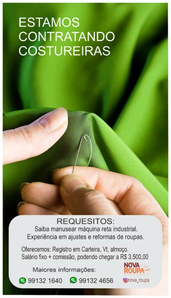 Seleção para vagas de Costureiras; Envie seu currículo!
