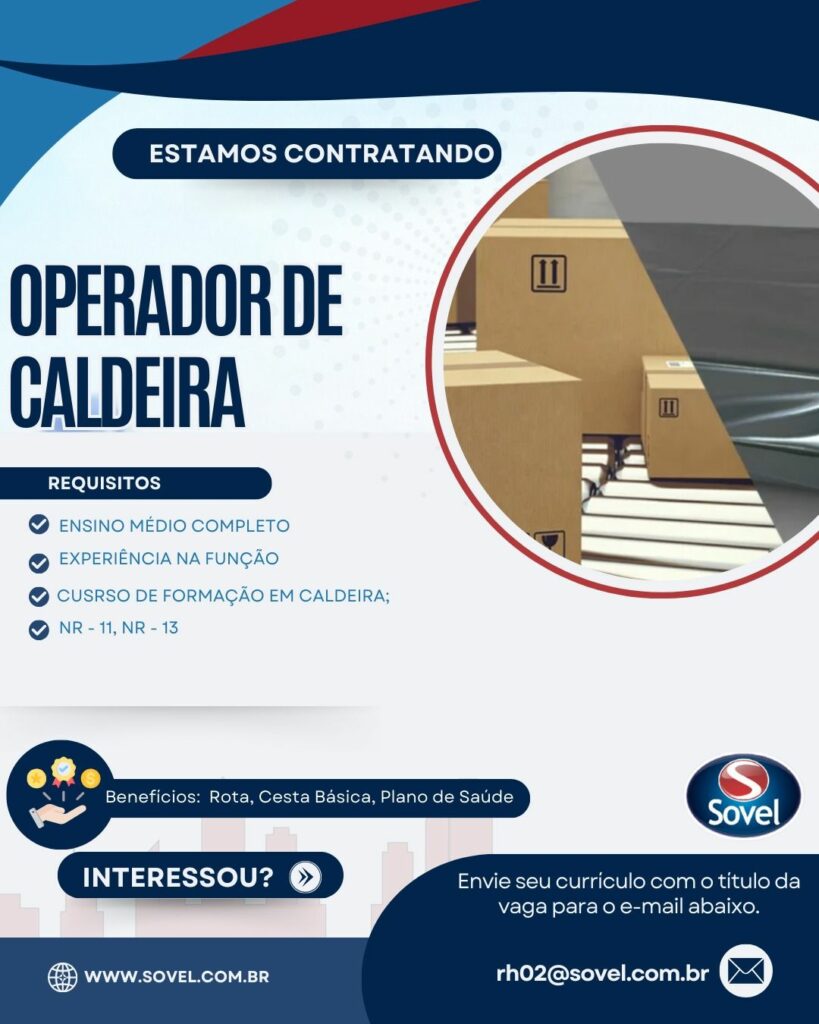 Sovel está selecionando para Operador de caldeira; Envie seu currículo!