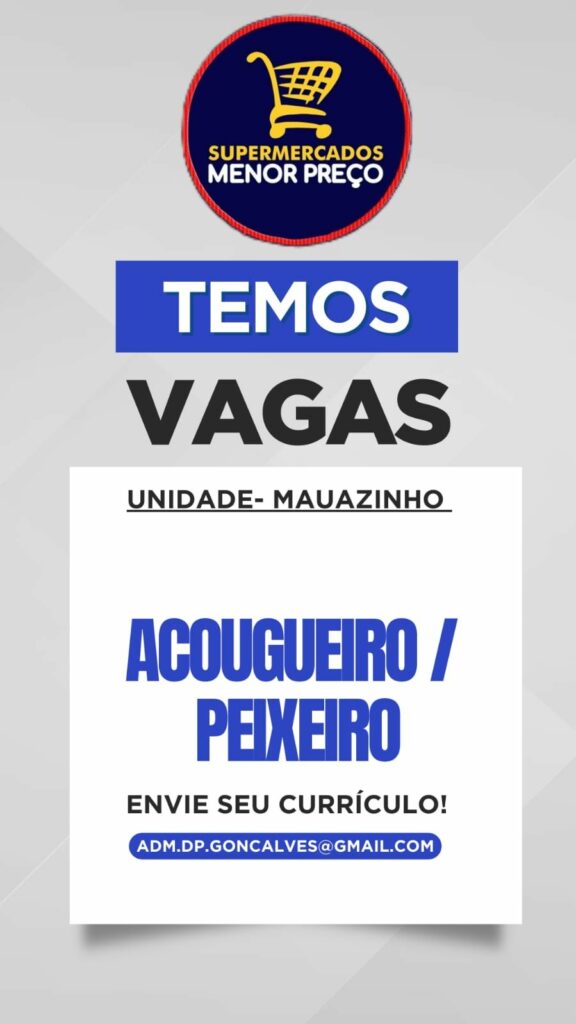 Supermercado está selecionando Açougueiro / Peixeiro; Envie seu currículo!