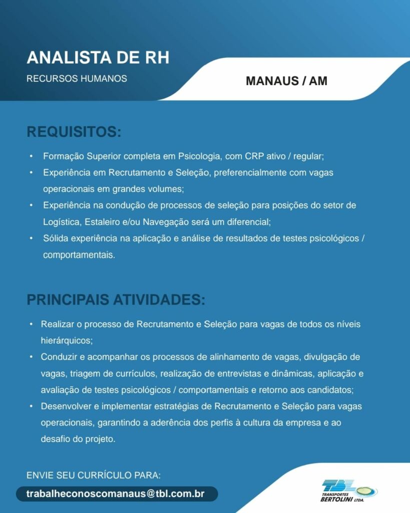 Transporte Bertolini Ltda abre seleção para vagas de emprego em Manaus