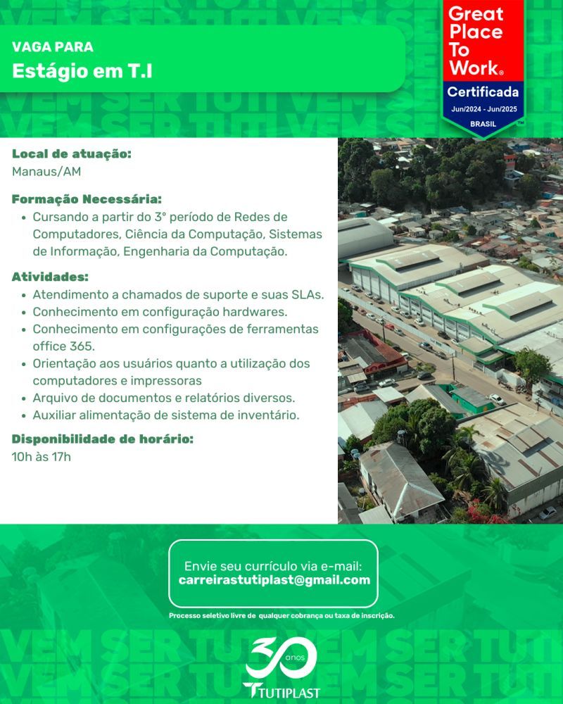 O processo seletivo para esta(s) vaga(s) não cobra absolutamente nada pela sua candidatura. Portanto, jamais aceite qualquer tipo de cobrança para cadastrar seu currículo.