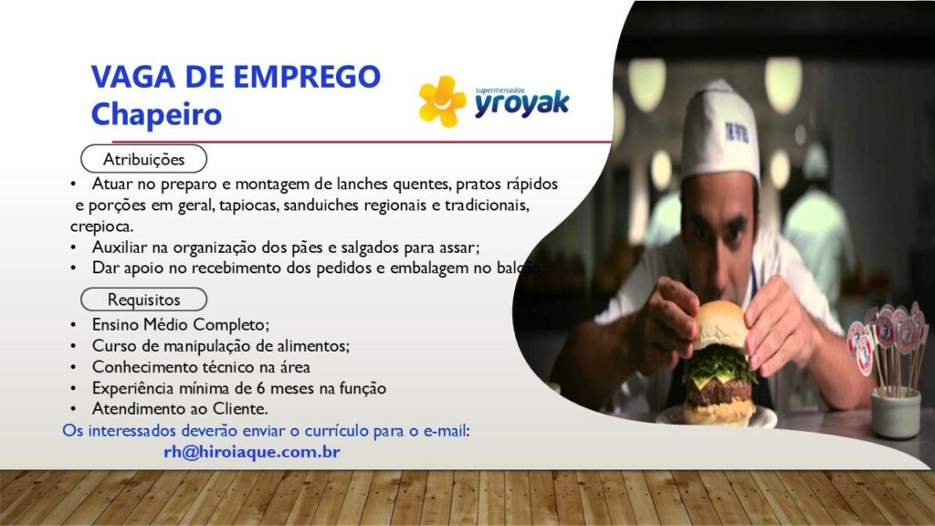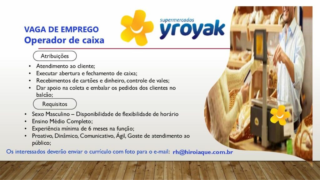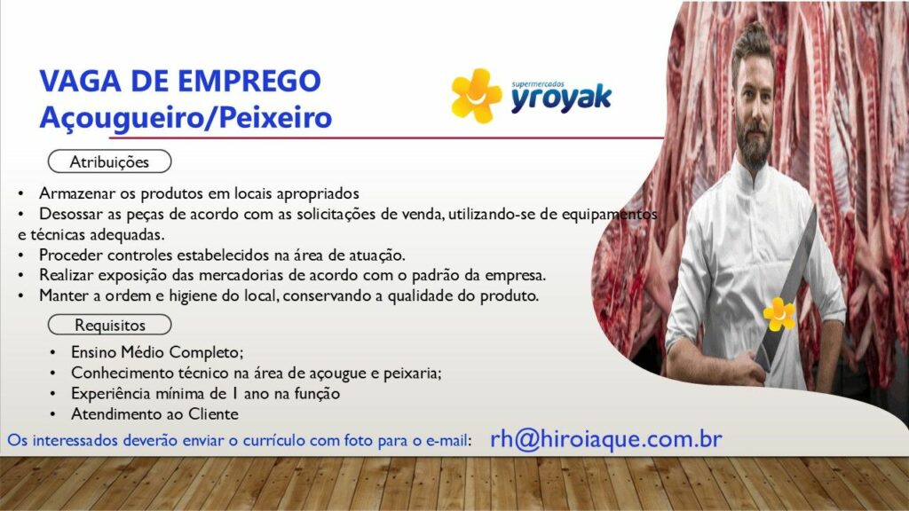 Yroyak supermercado seleciona Açougueiro / Peixeiro, Operador de caixa, Chapeiro; Envie seu currículo!