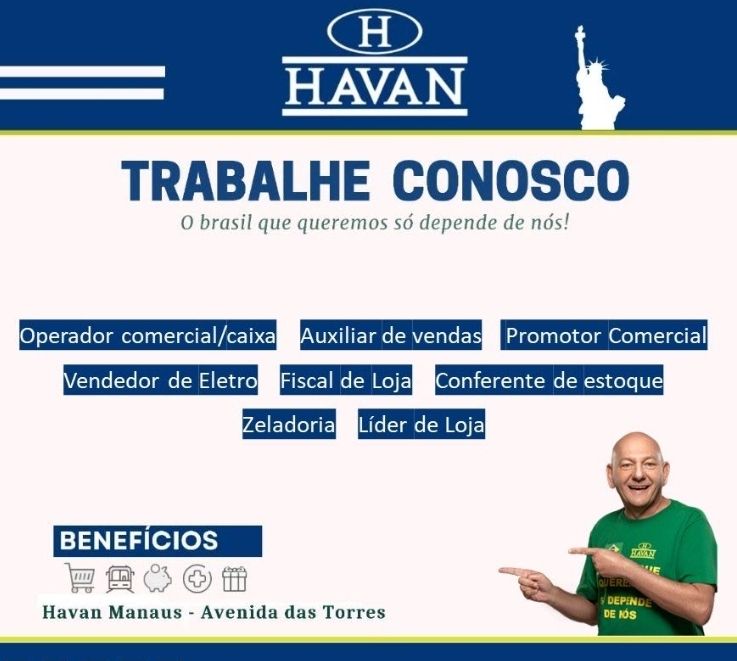Os interessados em fazer parte da #FamíliaHavan podem acessar o portal de carreiras da empresa e selecionar a unidade de Manaus para visualizar as vagas disponíveis e realizar a candidatura.