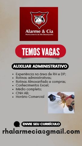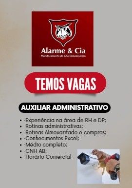 Alarme & cia seleciona Auxiliar administrativo; Envie seu currículo!