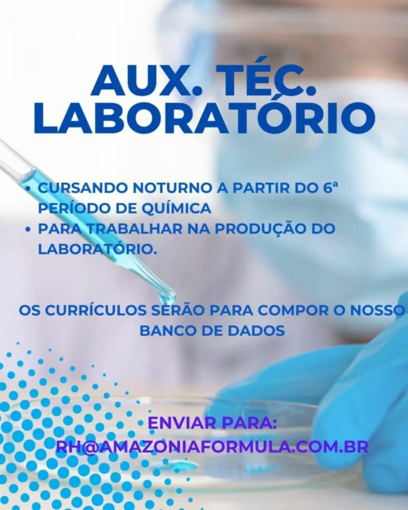 Amazônia fórmula seleciona Auxiliar técnico laboratório; Envie seu currículo!