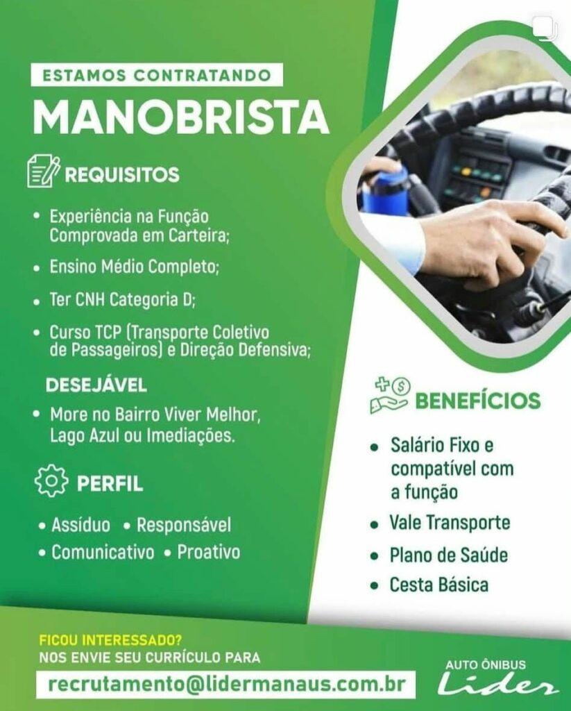 Auto ônibus Líder seleciona Manobrista; Envie seu currículo!