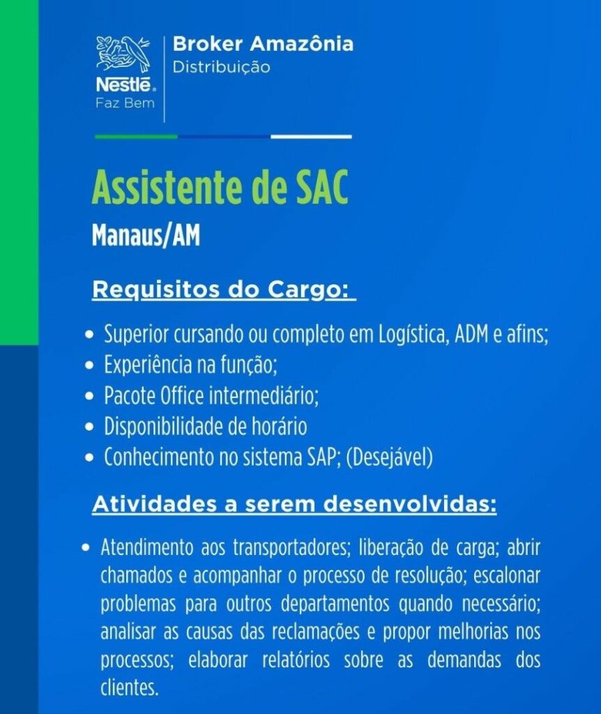 Broker da Amazônia seleciona Assistente de sac; Envie seu currículo!